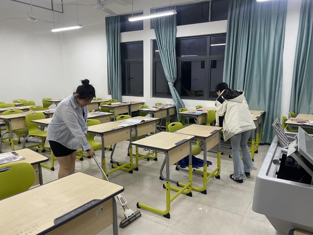 同時,自律委員會牽頭組織了清掃校園誌願活動,各班也積極響應,自行開展相關活動。活動期間,學生們熱情高漲,紛紛拿起掃帚、鏟子、垃圾袋等工具,全身心投入到環境衛生整治中。大家分工明確,對校園一站式社區、教室、宿舍等區域進行了全麵細致的清理。同學們不放過任何一個衛生死角,認真清掃落葉、雜物,擦拭欄杆、門窗。