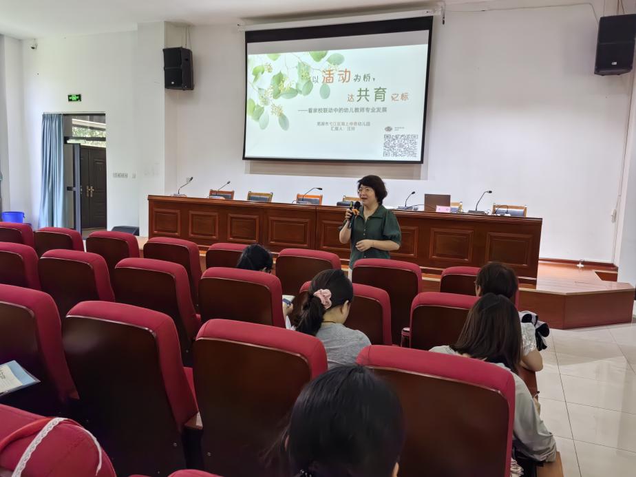 820日上午,安徽師範大學附屬幼兒園副高級教師、蕪湖市弋江區海上傳奇幼兒園外派園長汪玲,在其昶樓報告廳為2025年安慶市“安心托幼行動”幼兒園新入職教師學員做《以活動為橋,達共育之標——家校聯動中的教師專業發展》的專題培訓。講座由桐城師範高等專科學校學前教育係副主任宋曉燕主持。