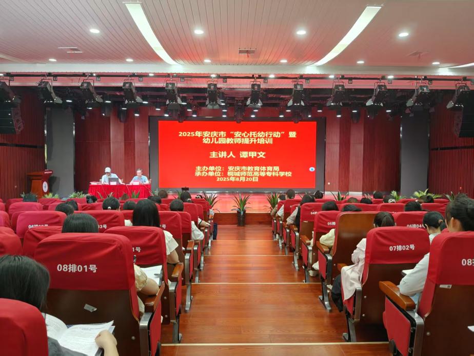 8月20日上午,池州學院學前教育學院譚甲文教授在音樂樓音樂廳為2025年安慶市“安心托幼行動”暨幼兒園教師提升培訓班學員做《嬰幼兒早期托育教育政策的國際比較與本土啟示》的主題講座。講座由桐城師範高等專科學校學前教育係主任曹杏田主持。