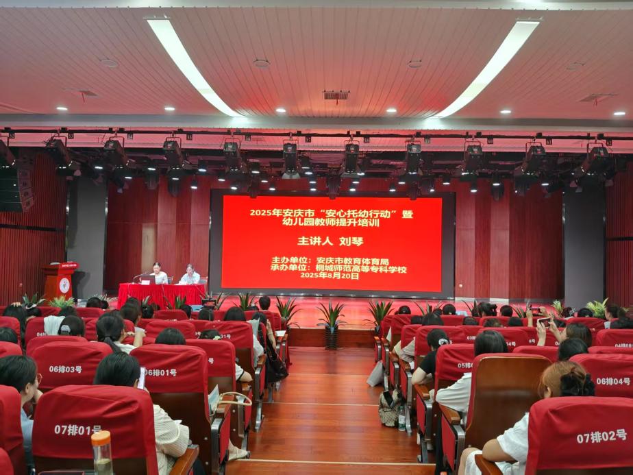 8月20日下午,桐城市人民醫院護理部主任劉琴在音樂樓音樂廳為2025年安慶市“安心托幼行動”暨幼兒園教師提升培訓班學員做《科學照護,健康“童”行—兒童生活照護與疾病安全規範》的主題講座,講座由桐城師範高等專科學校教務處處長汪秀主持。