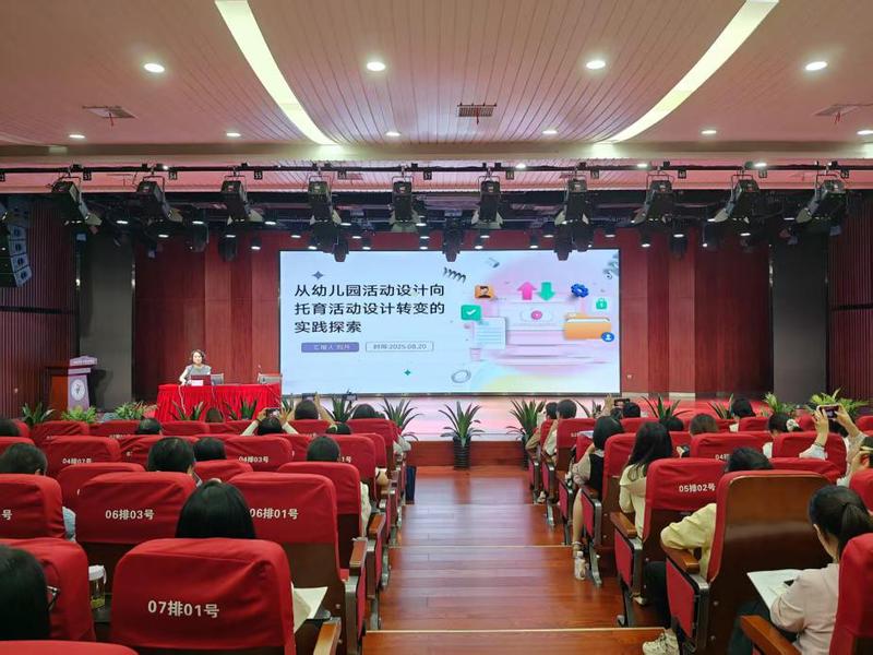 8月20日上午,安慶稚惠托育園園長劉丹在音樂樓音樂廳為2025年安慶市“安心托幼行動”暨幼兒園教師提升培訓班學員做《從幼兒園活動設計向托育活動設計轉變的實踐探索》的主題講座,講座由桐城師範高等專科學校學前教育係嬰幼兒托育服務與管理專業帶頭人黃瑞主持。