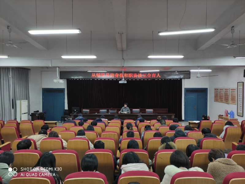11月29日晚上7:00,副校長程玉梅為全體專、兼職輔導員作了“從輔導員的身份和職責談三全育人”的思政課專題報告。各係分管副主任、學管幹事和全體專兼職輔導員參加了報告會,學生處處長王斌主持。