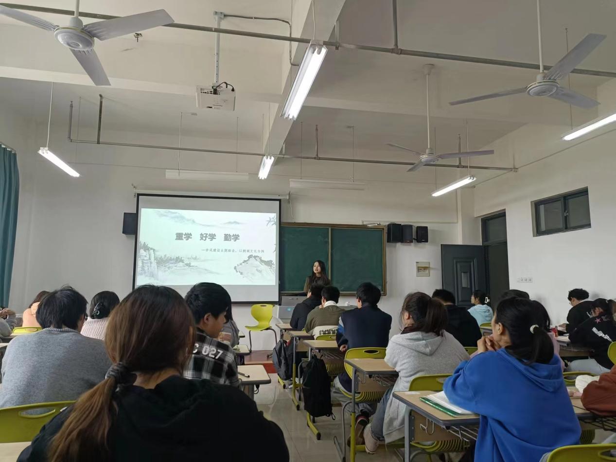 專職輔導員葉慧敏分別從桐城文化中的學風、為何學以及怎麽學這三個方麵引導學生培養重學、好學、勤學的思想,樹立終身學習的理想信念,班會中注重與學生互動,充分調動了課堂氛圍,讓學生產生了積極的興趣。