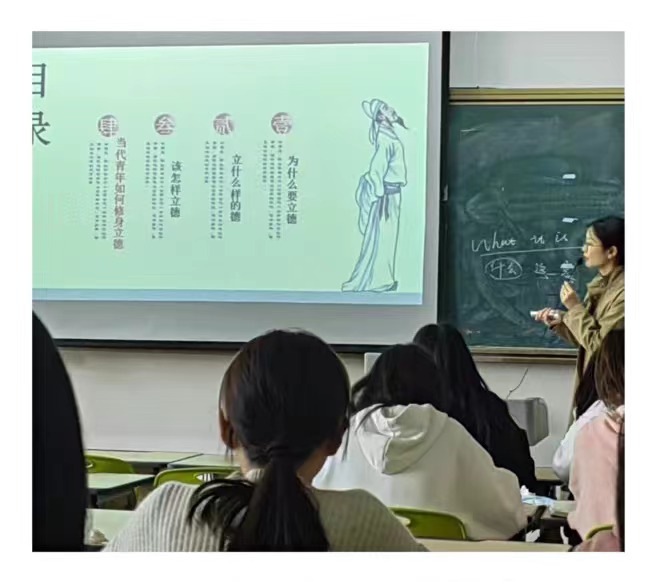 專職輔導員王辰銘結合桐城文化故事、實時熱點事件和習近平總書記的講話,深入地探討應該如何修身立德。通過視頻和圖片形式的展現,與學生互動,帶動學生思考。引導學前教育的同學,以後作為教師,先要立自己的德,日後才能成為學生為學、為事、為人的示範。