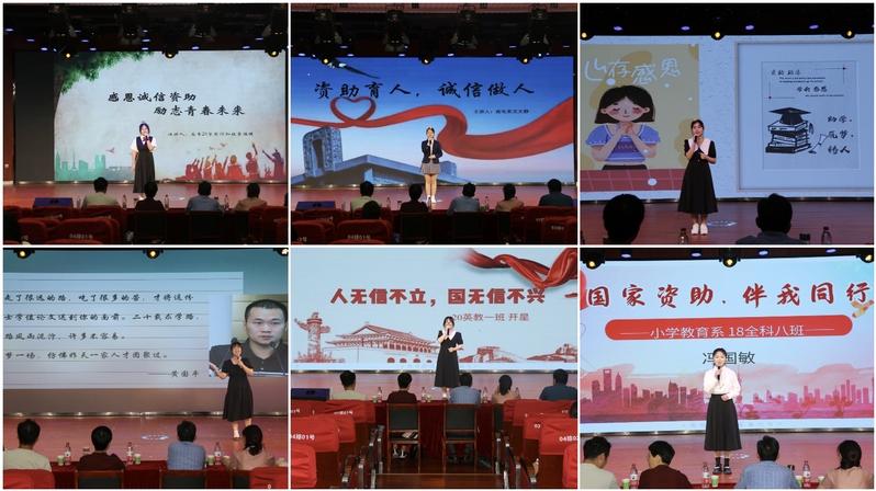 5月份,學生處組織舉辦了“資助誠信感恩勵誌教育”演講比賽,宣講國家資助政策,呼籲廣大同學要不畏困難、勵誌成才;小學教育係開展了“知恩至誠 資助育人”線上征文比賽,撰寫青春奮鬥故事,展現新一代大學生的奮鬥風采,感恩國家、社會、學校的幫助;商貿與電子信息係和旅遊與公共管理係聯合開展了金融知識競賽活動,有效提高了學生的自我保護能力、安全防範能力和金融避險能力;學前教育係舉辦了“誠信校園行”舞台短劇大賽,通過劇本創作、角色扮演、情景再現的手法促進學生提高原創思維和創新意識,倡導以誠信為本,做誠信之人。