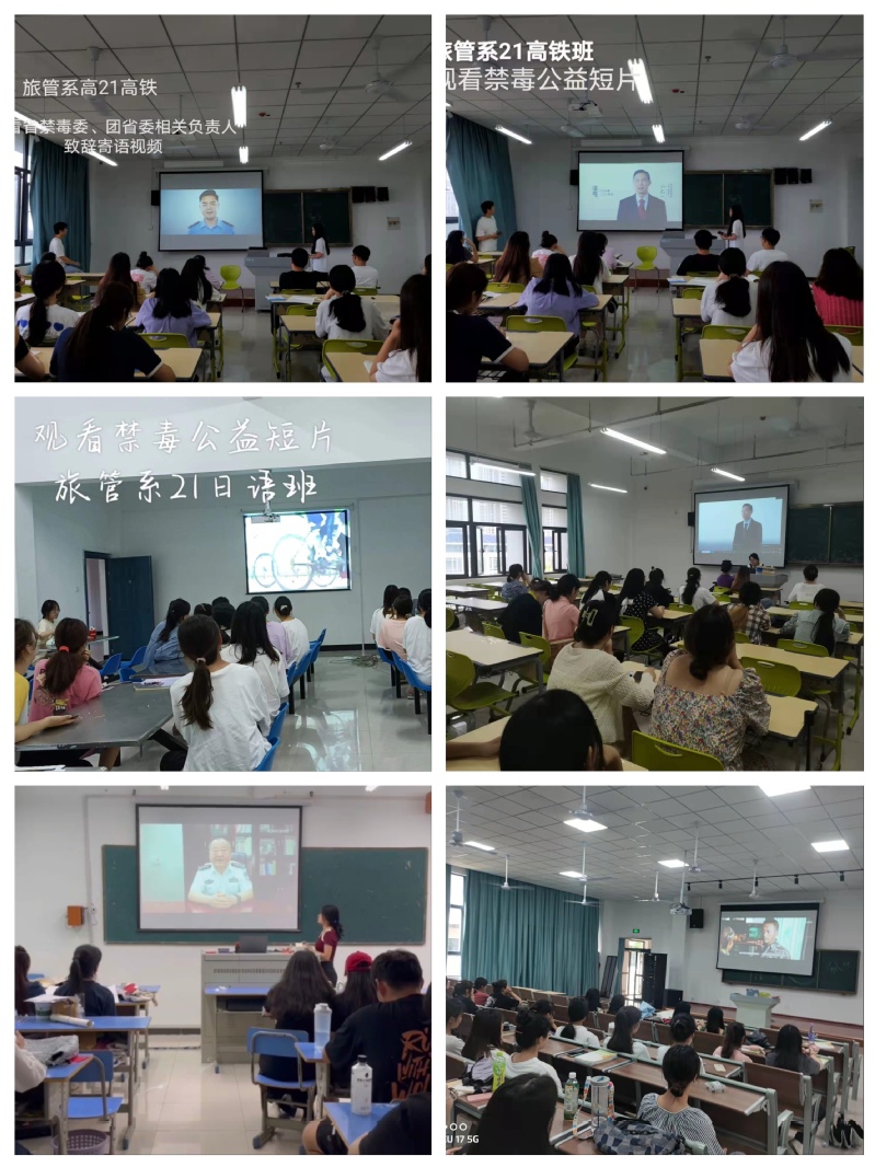 觀看宣傳視頻,樹立禁毒意識。禁毒宣傳公益短片觀賞活動中,各係組織學生觀看了公益短片《青春不是揮霍的籌碼》、《無孔不入的第三代毒品》以及省禁毒委、團省委相關負責人致辭寄語等視頻。學生分享了觀看心得,暢所欲言談論自己對毒品的認識、預防方法的掌握。通過學習觀看宣傳視頻,深入宣傳了毒品危害,全麵普及了防範知識,切實提高學生抵禦毒品侵害的能力。