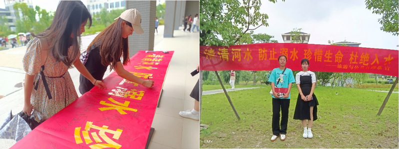 6月13日,旅遊與公共管理係開展了防溺水橫幅簽字活動。學生幹部向經過的同學發放防溺水知識宣傳單,介紹私自下河、塘遊泳的危險性和自救的方法,引導同學們有秩序地在橫幅上簽下自己的名字,讓每名學生都自覺參與到防溺水知識宣傳當中來,牢固樹立“生命可貴”的意識,營造良好的安全教育氛圍。