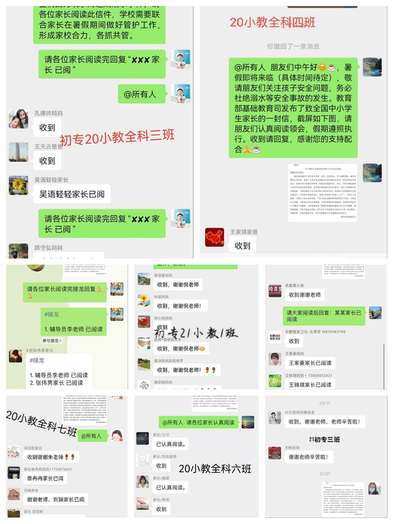 為進一步推進預防溺水教育工作,強化家校聯動,形成教育合力,共同築牢防溺水安全防護網。小學教育係中職階段學生輔導員積極在家長群內宣傳《防溺水致家長的一封信》,提醒家長們認真觀看學習,呼籲學生家長切實擔負起監護職責,共同提高風險防範意識和能力。