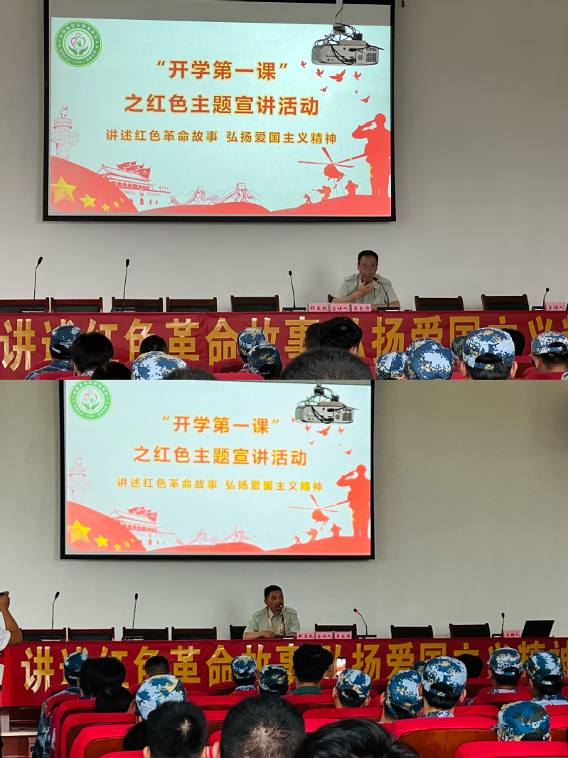宣講活動現場,宣講團成員、退役軍人李良濤與邵玉凱與師專學生們熱情互動,用樸素的語言分享自己的軍旅經曆和成長道路。兩位宣講人從部隊中的奮鬥往事到退役後的不懈奮鬥,娓娓道來,充分彰顯了革命軍人不忘初心、牢記使命、退役不褪色、建功新時代的良好精神風貌。