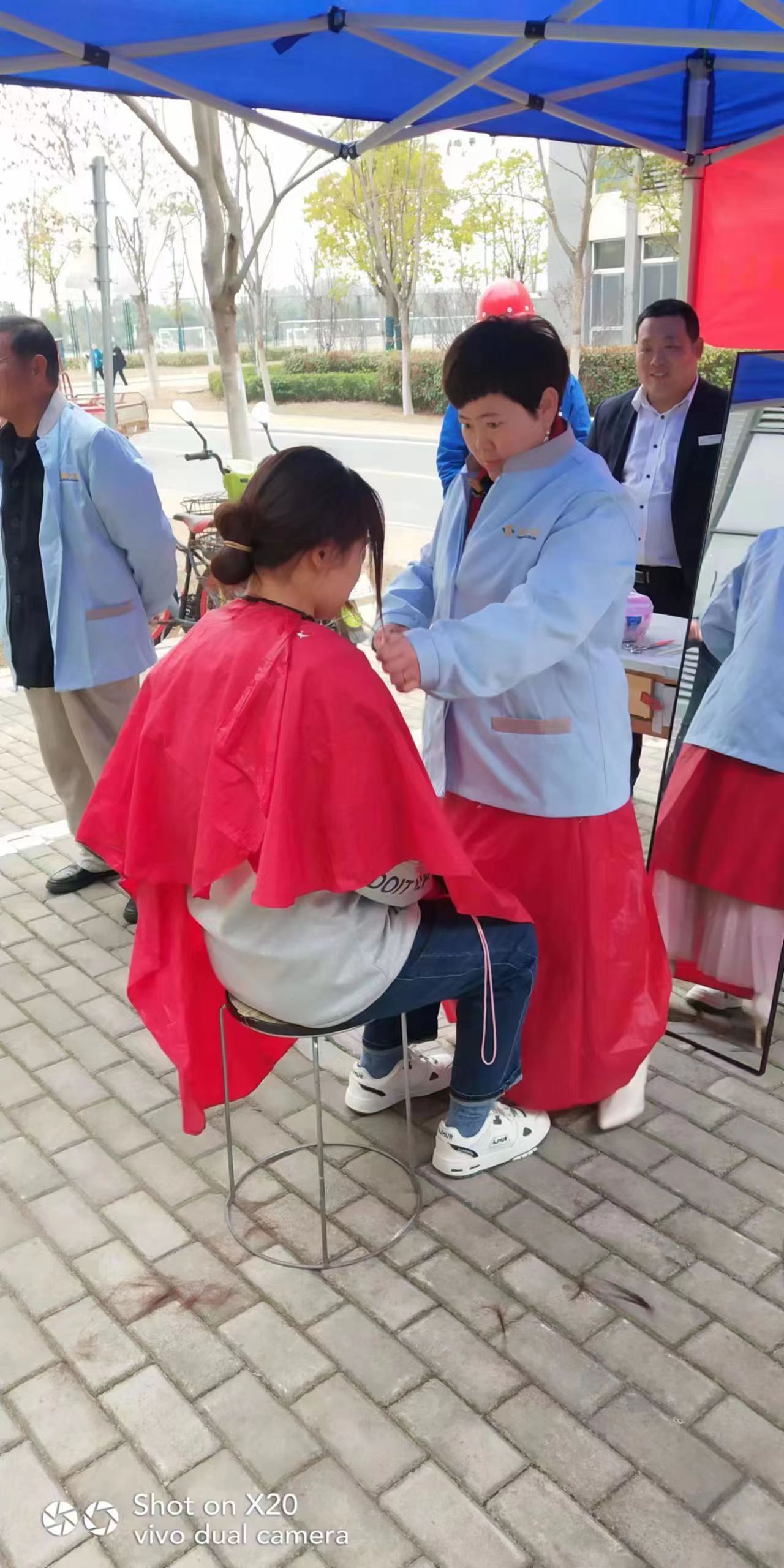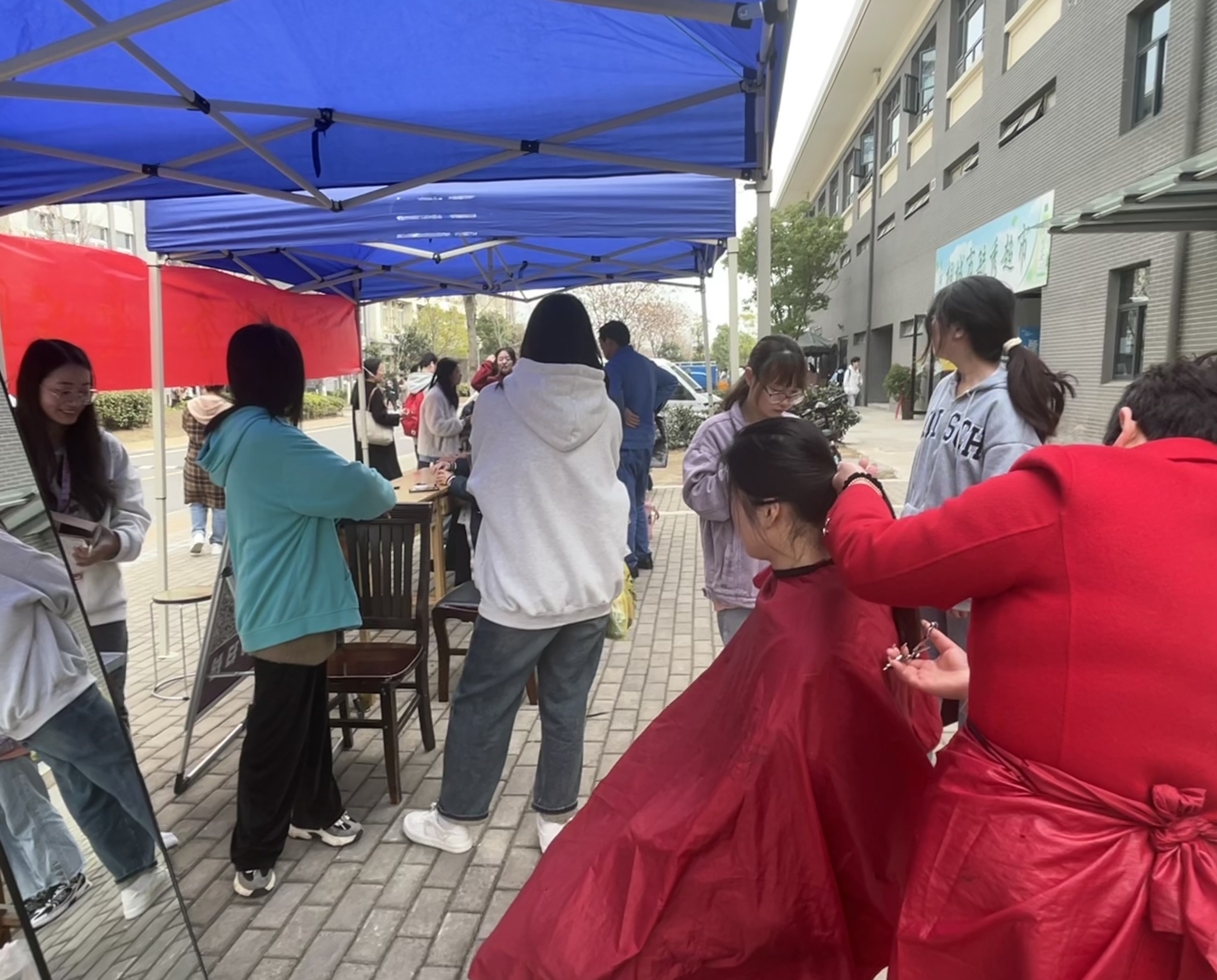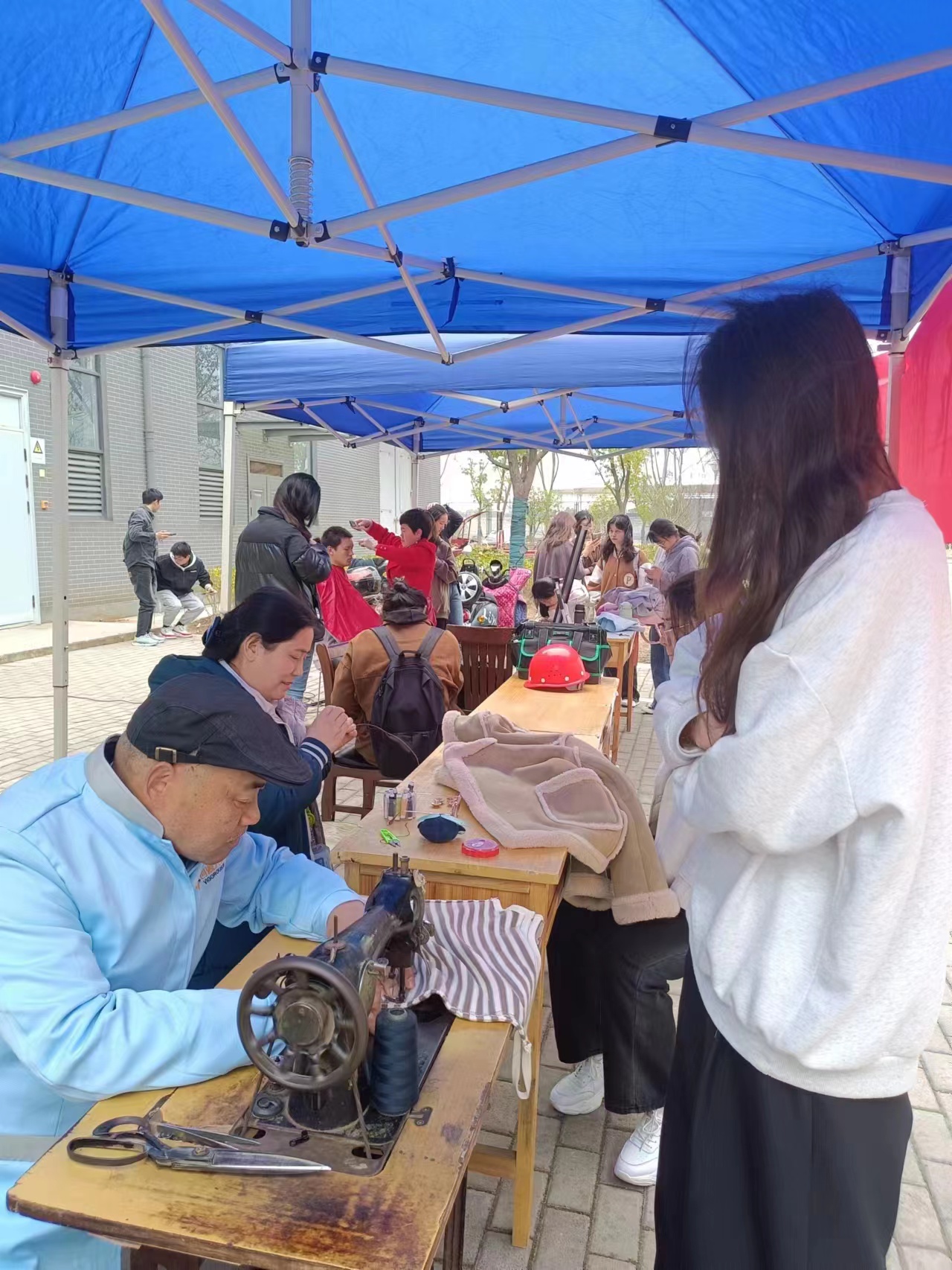 上午8時,活動正式開始。聞訊前來維修、縫補、理發的學生絡繹不絕,同學們根據實際需要前往指定區域有序排隊,耐心等待。工作人員認真細心,熱情周到,精湛的技術和暖心的服務獲得了在場學生的一致好評。春日裏的這股“暖風”在這個特殊的節日吹進了學生的心裏,現場氣氛高漲,歡快熱鬧。同學們紛紛表示:“今天的愛心服務活動為关键词2提供了極大便利,節約了大量時間,关键词2從內心感受到學校對关键词2的關愛和照顧。希望以後可以多舉辦一些類似的活動,关键词2很喜歡,為這個活動點讚!”