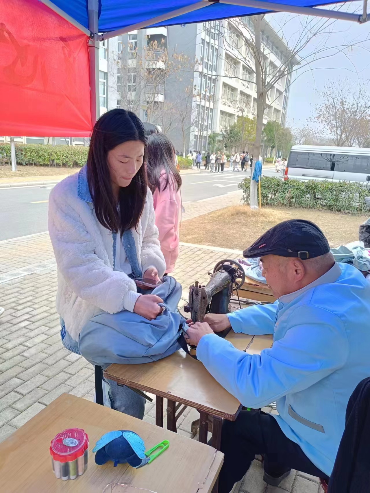 陽春三月,春風送暖。為進一步做細做實“我為師生辦實事”活動,解決學生學習生活中困難和訴求,3月8日,學生處聯合物業公司在學生宿舍區開展愛心服務活動,麵向在校生提供免費維修、縫補、理發等服務項目。