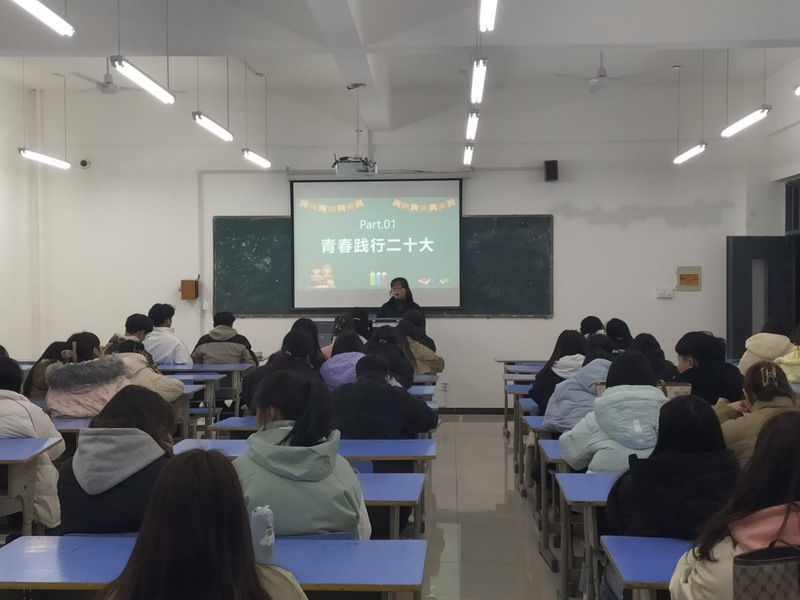 商貿與電子信息係21、22級科教班輔導員陶功勝老師在其昶樓開展“在青春的賽道上奮力奔跑”開學第一課主題班會,陶老師以詼諧幽默的語言圍繞著學習、生活、心態、安全、原則幾個角度與同學們交流。班會加深了全體同學對黨的二十大精神的深刻認識,幫助學生科學理性的看待疫情防控政策調整,引導學生注重個人健康安全,明確了新學期各班級的學習重點,為青年學子的奮鬥提供了方向引領。