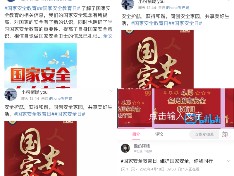 參與話題討論,創新交流渠道。活動期間,我校廣泛動員學生在微博、微信、快手、抖音、B站等線上平台開展話題互動,討論活動反響熱烈,同學們各抒己見,體現了學生群體對國家安全事業的高度認同和理解。同學們還積極參與短視頻接力活動,充分調動了同學們的積極性、主動性和創造性。