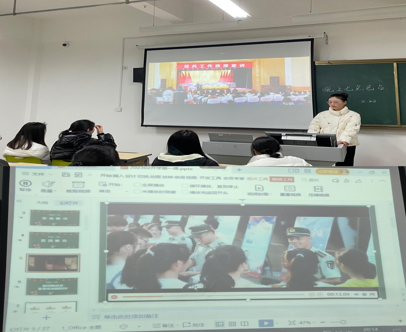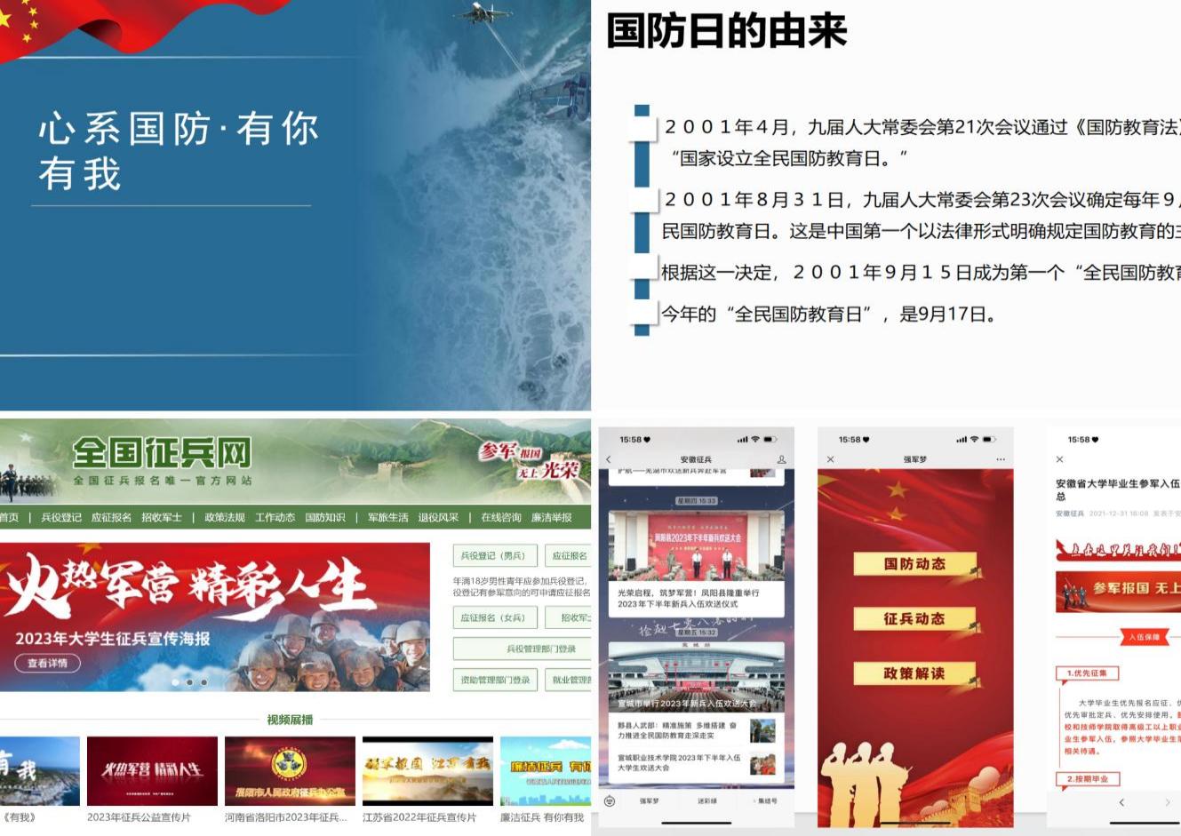 校係積極開展國防教育與征兵宣傳講座、主題班會、主題團日活動,利用宣傳欄、電子屏、QQ群、微信群、公眾號等方式,線上線下融合,構建宣傳矩陣,就國防教育有關內容及征兵工作有關政策進行講解,做到學生、家長信息全麵覆蓋,營造征兵宣傳動員的良好氛圍。