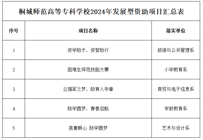 桐城師範高等專科學校2024年發展型資助項目立項公示