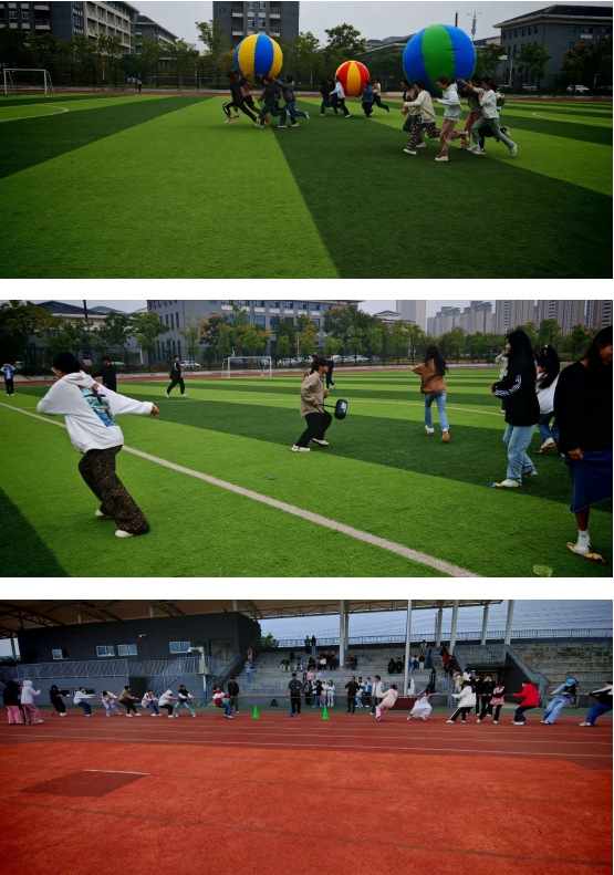 10月16日下午旅遊與公共管理係在操場開展攜“新”同行  “心”“新”相印—趣味團建活動。趣味運動會將競技與娛樂相結合,注重學生的參與和交流。本次趣味運動趣味性十足,合作性強,依次進行了“拔河”“運轉乾坤”“追逐尖叫雞”三個項目,既考驗個人的體能和技巧,又強調了團隊協作的重要性。