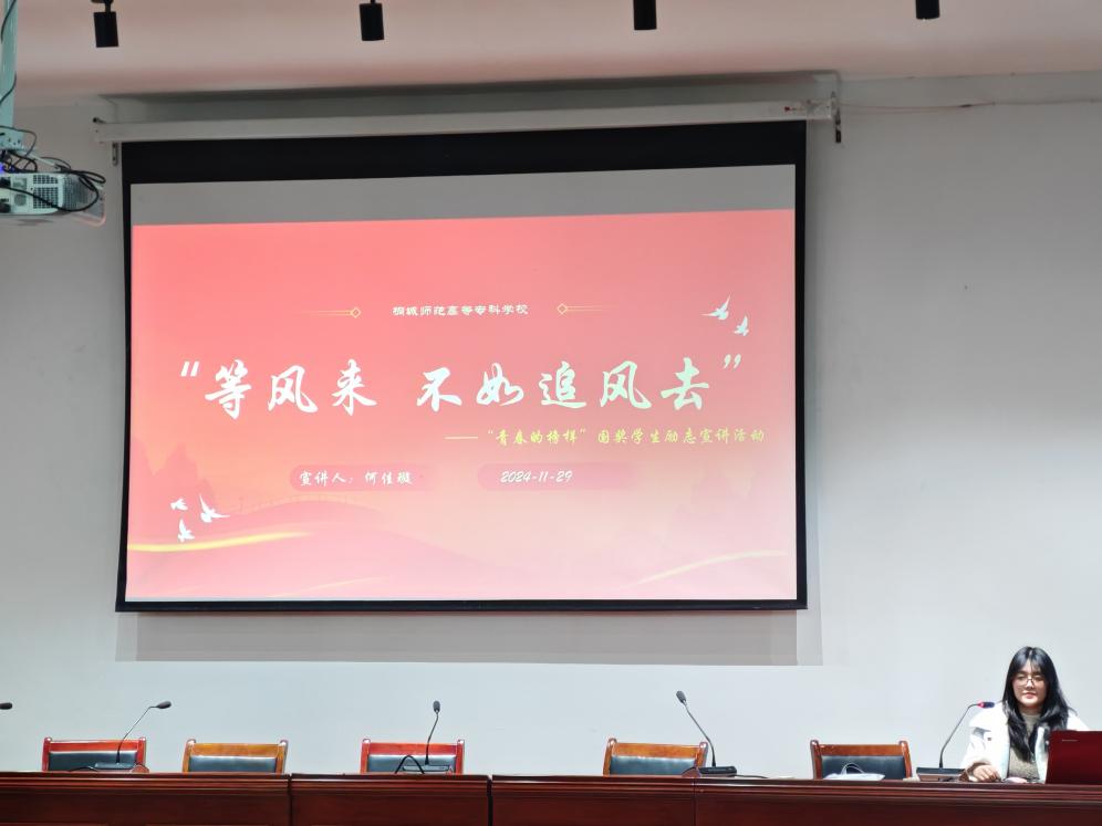 為激勵學生努力學習、積極進取,11月29日,學前教育係開展了以“青春榜樣 奮進前行”為主題的勵誌宣講係列活動。此次活動由該係國家獎學金獲得者何佳璿主講。