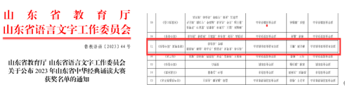 我校師生參加2023年山東省中華經典誦讀大賽榮獲一等獎