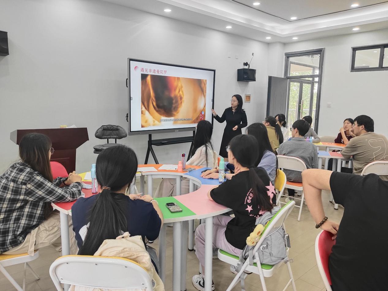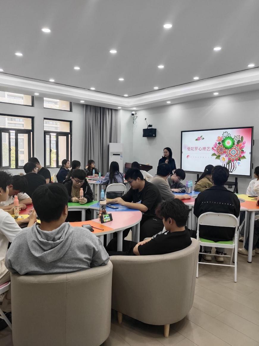 徐老師以繪畫療法為切入點,向同學們娓娓道來曼陀羅的起源故事,讓大家認識了曼陀羅繪畫。曼陀羅繪畫通過冥想和專注、心靈連接、色彩療法以及幾何形狀的治療效應,能夠有效促進身心的平衡和自我成長。為了讓大家更直觀地了解曼陀羅,徐老師通過展示不同幾何形狀、色彩的曼陀羅案例圖片,帶領大家進入了曼陀羅的神秘世界。