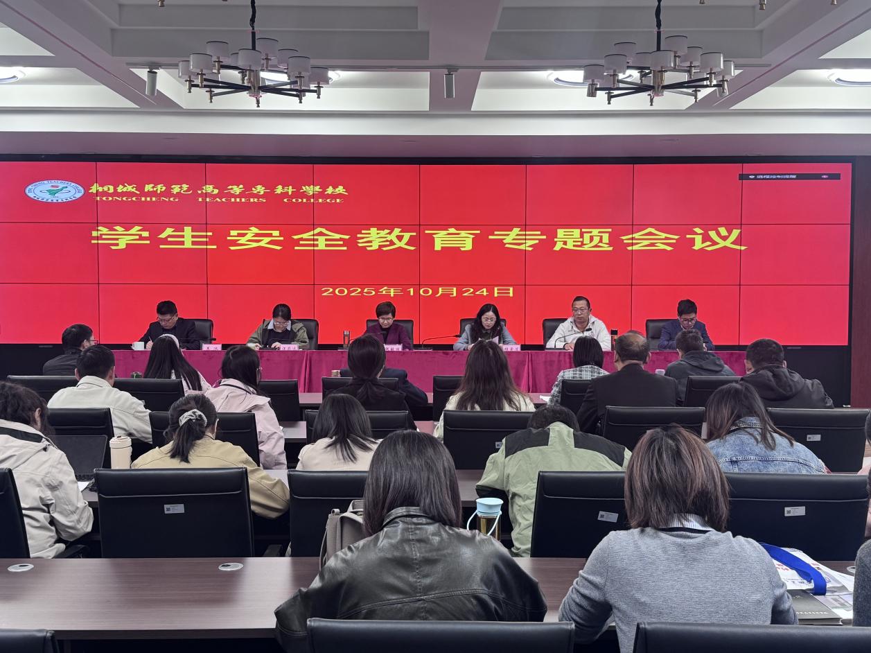 為進一步壓實校園安全管理責任,築牢學生安全防線,10月24日下午,我校在明德樓二樓報告廳召開學生安全教育專題會議。校黨委副書記張敏麗出席會議並講話。教務處、學生處、安全管理處、總務處負責人,各係分管學生工作副書記、學管幹事、全體輔導員,以及宿管中心、安保公司負責人參加會議,會議由學生處處長汪若冰主持。