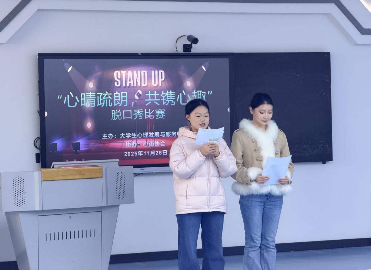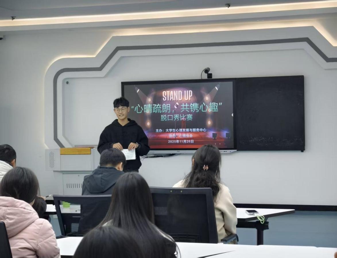 1126日下午,由大學生心理發展與服務中心主辦,心雨協會承辦的“心晴疏朗,共鐫心趣”脫口秀比賽在毓秀樓智慧教室舉行。自活動通知發布後,同學們積極報名,踴躍參與,15個作品經過初步篩選進入現場展演環節,為关键词2帶來一陣歡聲笑語。