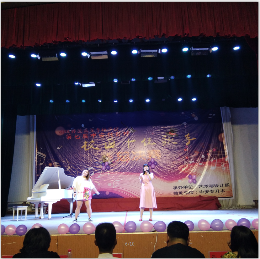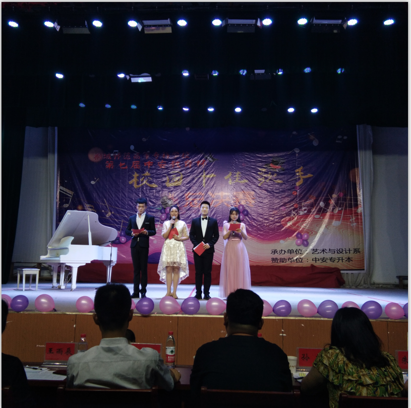 歌聲嘹亮,音符飄揚,20186月5日晚7點,由藝術與設計係承辦的桐城師專第七屆“中安教育杯”校園十佳流行歌手總決賽在學生劇場舉行,曆經海選賽、複賽的激烈角逐,有15位同學站上了總決賽的舞台。