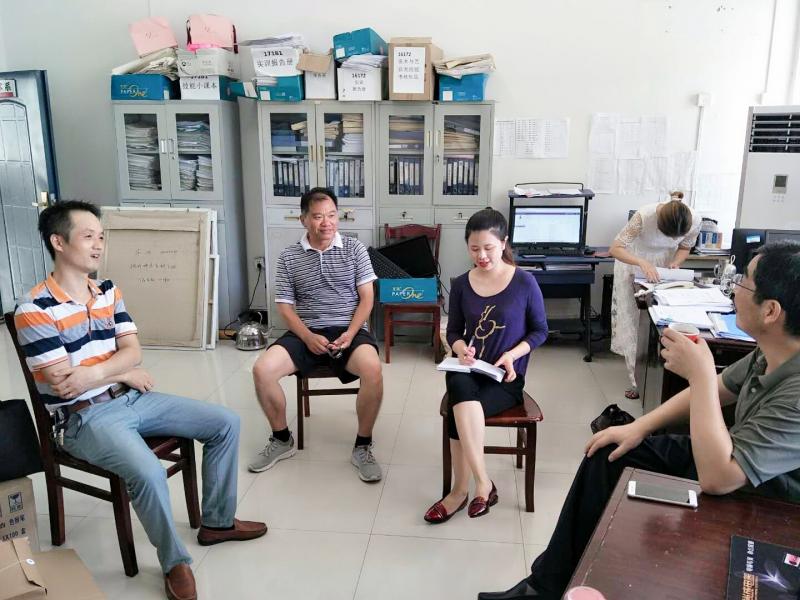 919日上午,沈波校長、教務處汪定貴副處長及相關負責同誌深入藝術與設計係進行教學檢查,調研教學管理與招生工作並與係辦公室全體成員共同交流了2018年藝術與設計係開學報到情況、係部日常教學、學生管理具體實施情況、藝術設計專業的課程安排方案及鯤池樓的教室使用情況