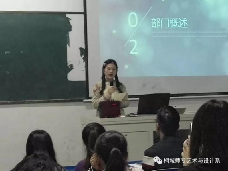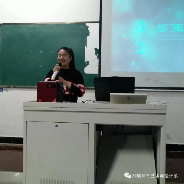 接著朱雅文同學通過PPT展示,和大家一起分享了上一學年團總支、學生會策劃、組織的一些精彩活動照片,回顧每一位學生會成員的成長曆程。各部門部長也依次上台對本部門工作的內容作了講解,並希望新成員能較快的進入工作狀態。