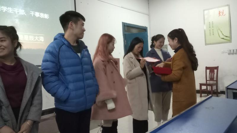 接著,係團總支、學生會對獲得2017-2018學年“優秀學生幹部”、“優秀學生幹事”的同學進行表彰,係副主任倪甜甜老師給他們頒發聘書及榮譽證書。