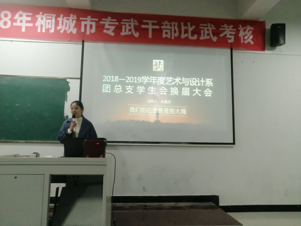 2018年11月21日晚6:00,藝術與設計係2018-2019年度團總支、學生會換屆大會在鯤池樓多媒體一教室舉行,會議由團總支副書記朱雅文同學主持,出席本次換屆大會的老師有係副主任倪甜甜老師、團總支書記程周鵬老師,係團總支、學生會全體成員出席會議並參與投票。