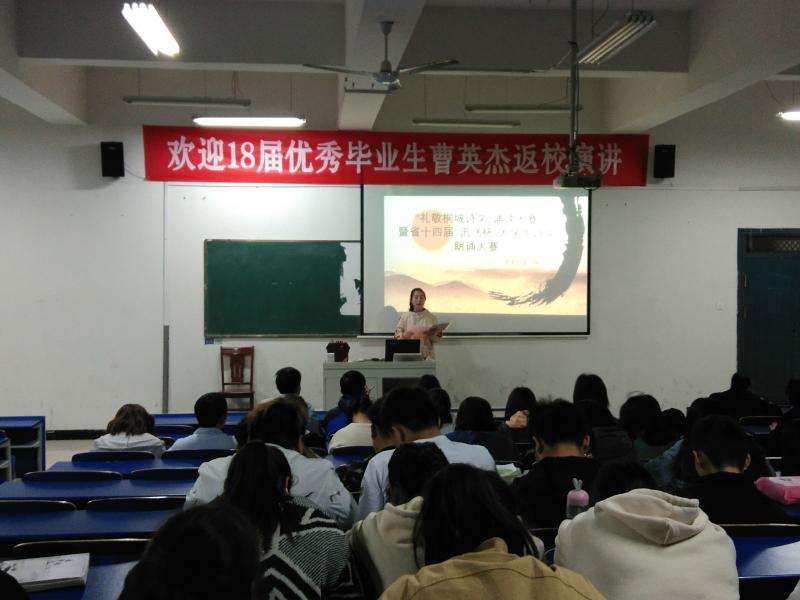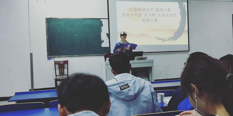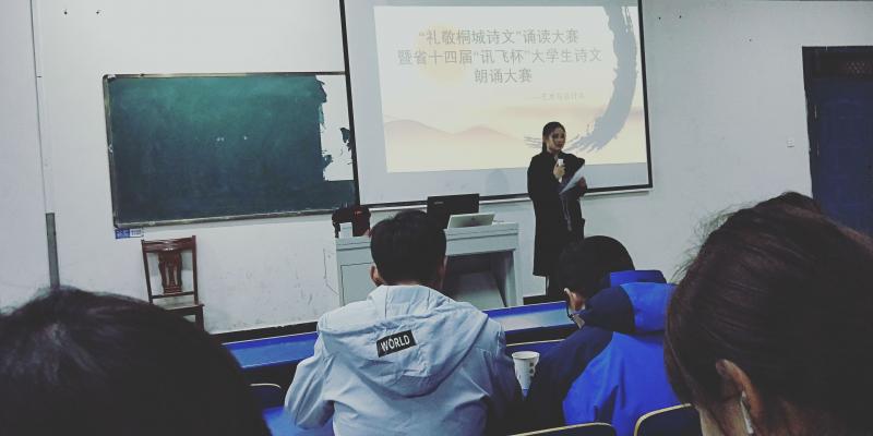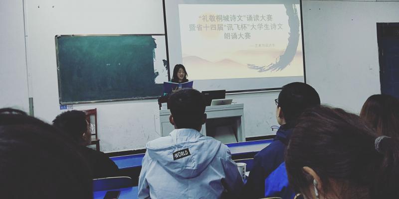 一首詩,傳承千年文化,一篇文,照亮成長之路。2019年4月9日晚上,由藝術設計係承辦的“禮敬桐城詩文”誦讀大賽暨省十四界“迅飛杯”大學生詩文朗誦大賽係內選拔賽在鯤池樓多媒體一正式拉開帷幕。本次朗誦比賽活動旨在傳承經典、弘揚和培育以愛國主義為核心的民族精神、打造書香滿園,增強學生幸福感受,提升道德情操。