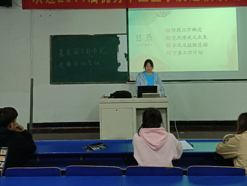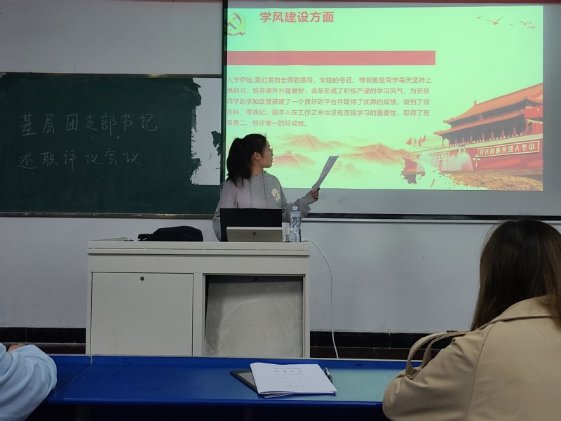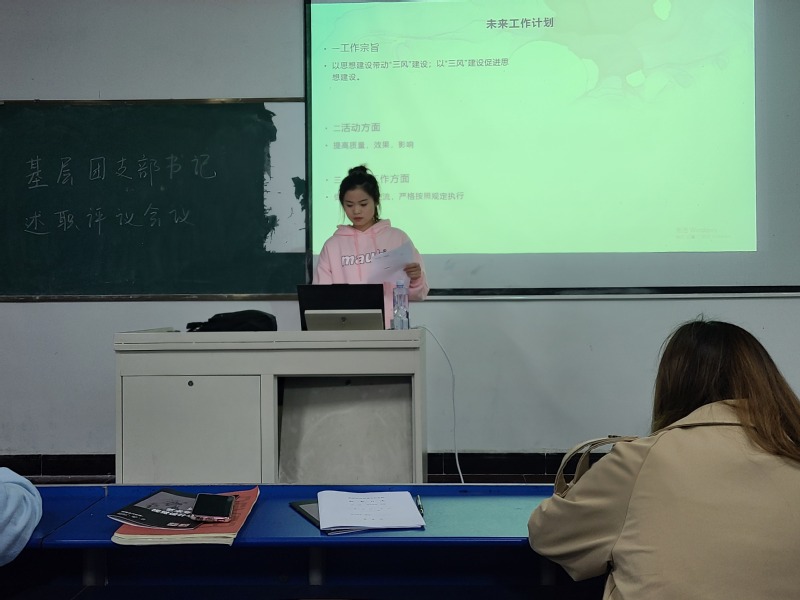 本次述職內容主要圍繞本支部對年度共青團工作重點任務的落實情況展示。各位團支書分別用真誠且自信的態度、簡單精煉的語言、條理清晰的總結,分別從自身建設、主題團日活動、青年大學習、團支部手冊考核、精神風貌、智慧團建、社會實踐、誌願服務、創新創業、特色做法等方麵對本班級團組織履行引領凝聚青年、組織動員青年、聯係服務青年的基本職責和工作情況進行認真報告,展現了各團支部積極向上的學習態度以及豐富多彩的課外生活。