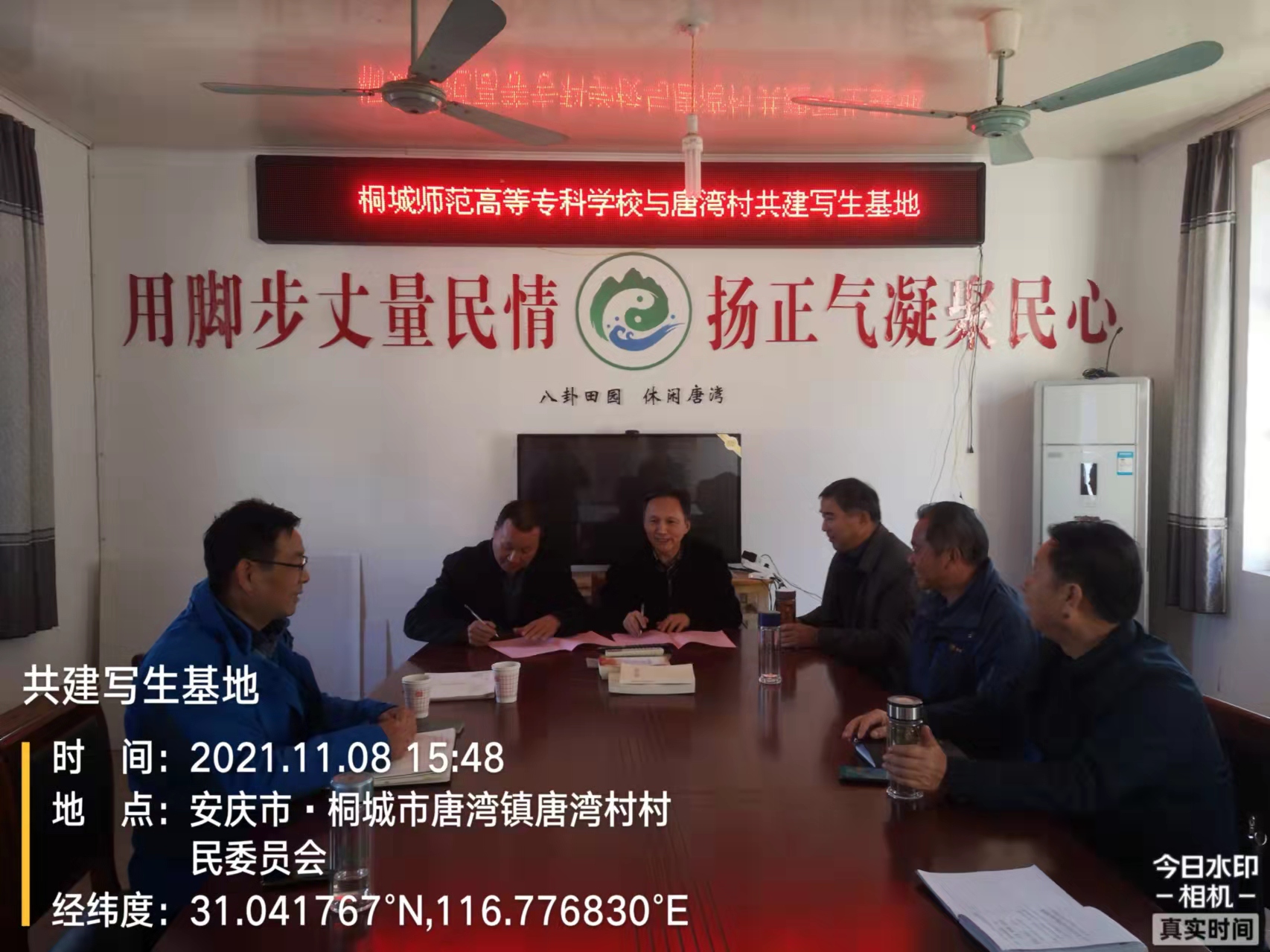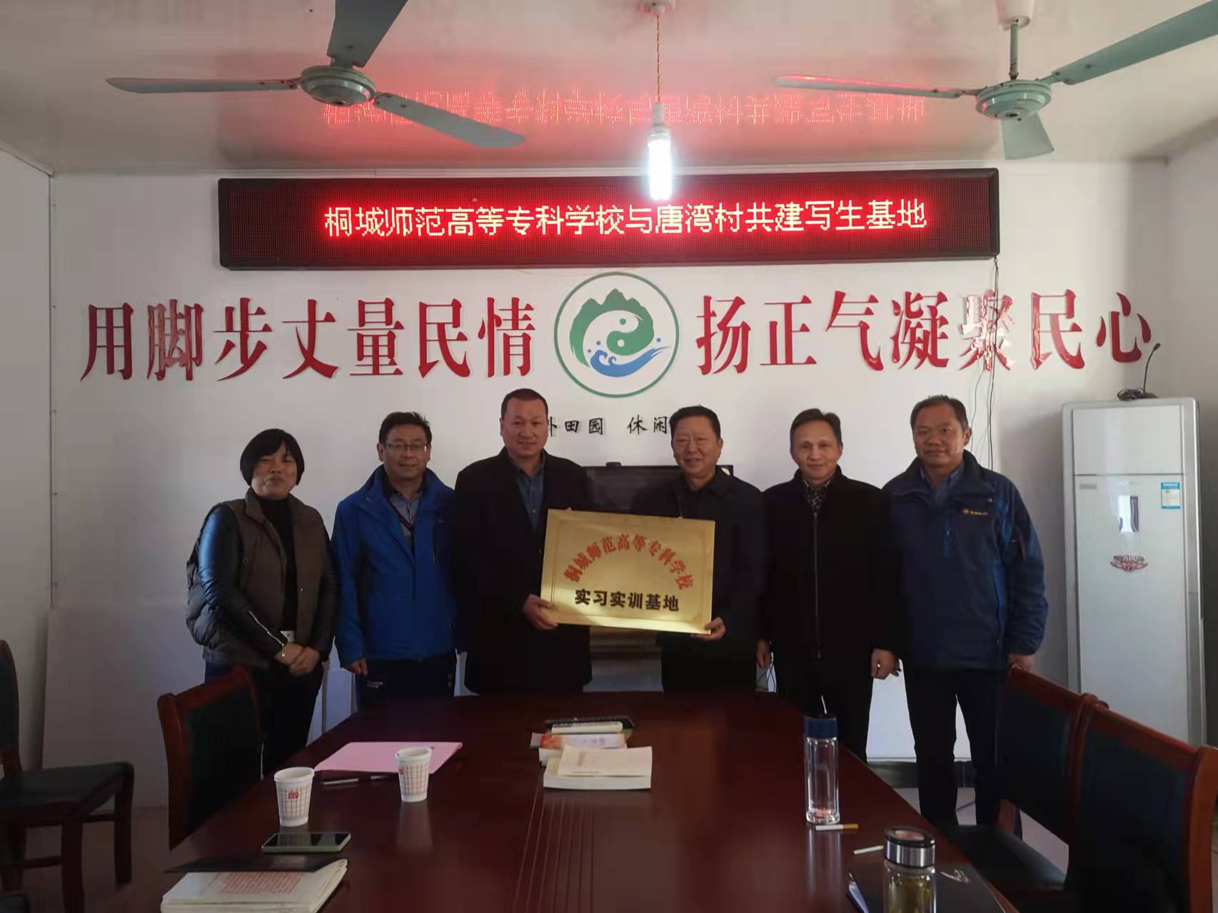 會上,教務處代表學校和唐灣村簽訂共建寫生基地協議,吳登明代表學校授予唐灣村實習基地匾額。