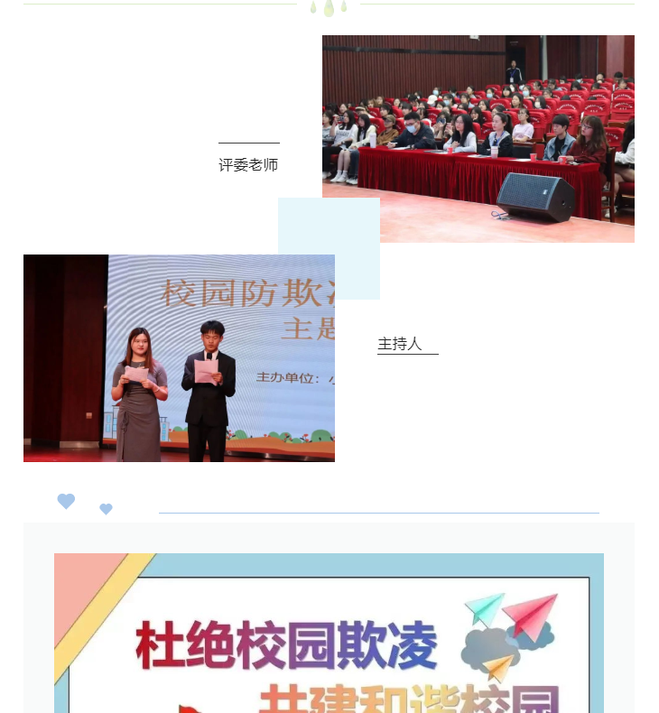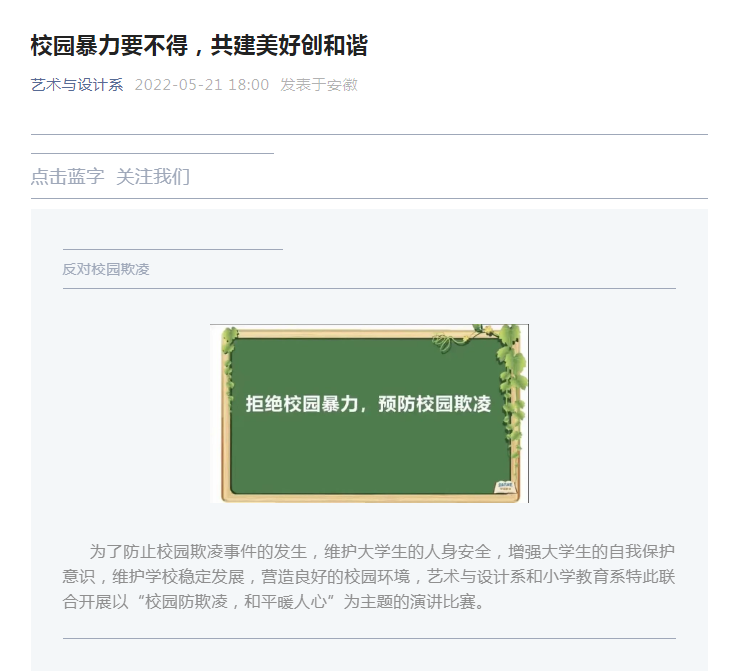 除了線下開展校園防欺淩和暴力主題教育活動,关键词2還通過微信公眾號線上平台進行推廣,更好的營造校園防欺淩和暴力的氛圍。