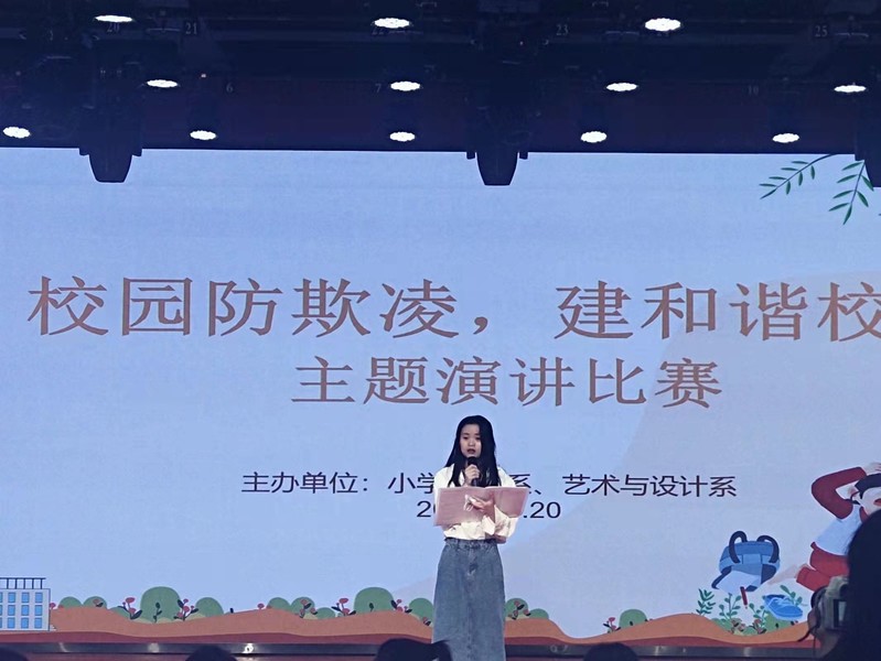 5月20號晚7點,小學教育係、藝術與設計係在校音樂廳聯合開展了“校園防欺淩,建設和諧校園” 主題演講比賽(決賽)。周今、胡文君、程蓉蓉、江敏和程昊五位老師擔任大賽評委。