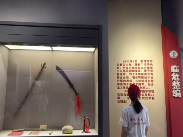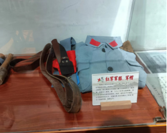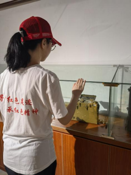 在隊長的帶領下,實踐小組成員參觀了羅漢尖革命根據地物品陳列館,在這裏可以看見革命戰士們使用的木質保溫飯盒、舊木瓢、梳妝台、武器,還有他們穿戴過的紅軍軍服、軍帽、草鞋等。