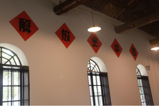 進入大門,映入眼簾的是一張會議桌,解說員為實踐小組介紹了劉鄧大軍在這裏召開會議的故事,小組成員們了解到了“打過長江去,解放全中國”這句話的真正意義。
