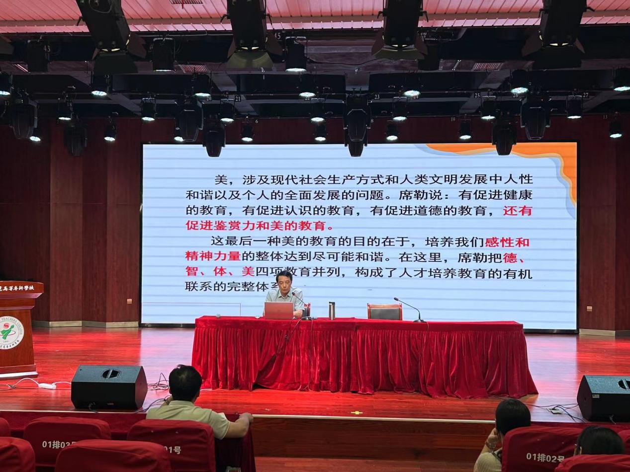 講座中,朱教授圍繞什麽是美育、為什麽要實施美育、以及如何以美育浸潤學校教育展開,列舉了古今中外各種有關美育的鮮明例子,由淺入深,理論結合實際,將美育融入生活中的點點滴滴。