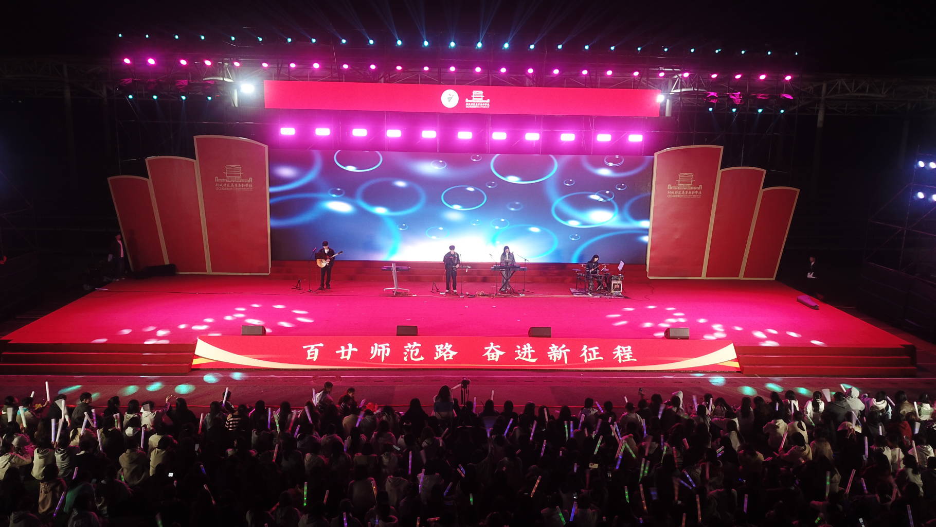 118日晚7點,我係topping-up樂隊專場演出在校田徑場順利舉辦,他們通過音樂向學校辦學120周年致敬。青春的旋律在舞台上飛揚,魅力四射的演出和如癡如醉的觀眾共同讓夜晚的星躍動著青春的熱辣滾燙”!