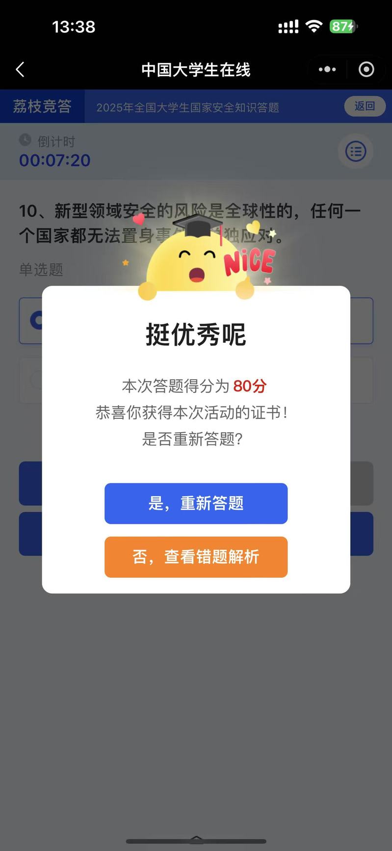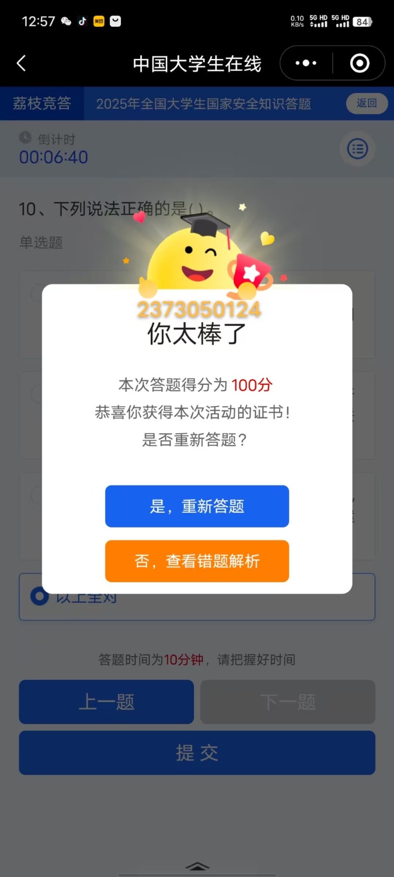 三、組織學生參與“全國大學生國家安全知識答題活動