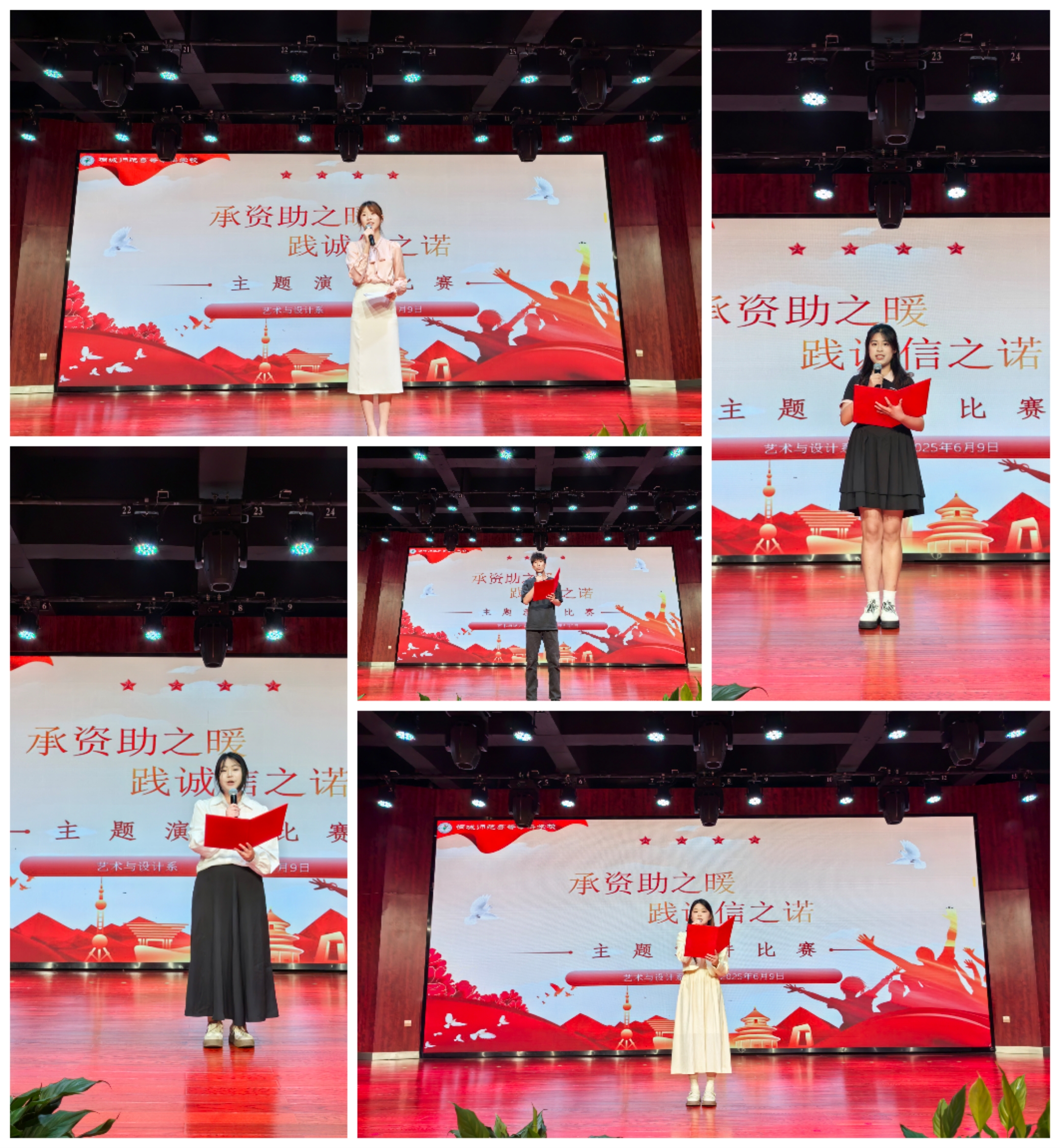 為深化資助育人成效,弘揚誠信文化,藝術與設計係於6月9日下午在校音樂廳舉辦“承資助之暖,踐誠信之諾”主題演講比賽。邀請到程周鵬、範後成、黃振三位老師擔任大賽評委,共有17位同學報名本次大賽。選手們從自身經曆或身邊故事出發,講述國家資助政策如何點亮求學之路,傳遞誠信受助、感恩回饋的信念。根據評委老師的現場打分,比賽結果如下: