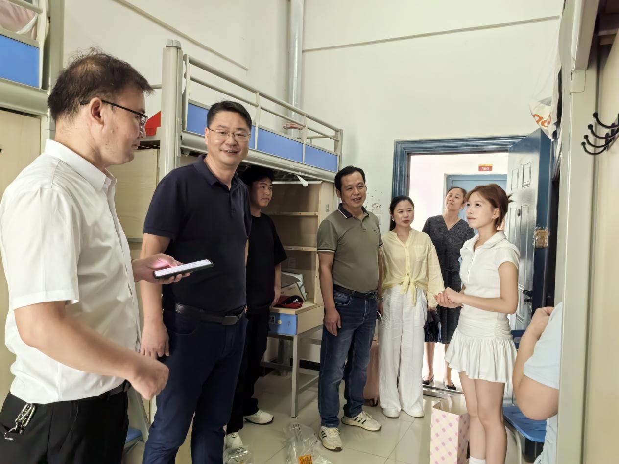 報到期間,係領導親臨迎新一線,關心係部新生報到工作進展,並與2025級新生和家長麵對麵交流。為新生報到工作的平穩進行提供了有效助力。9月8日上午,王宏偉校長率隊,係領導以及全體新生輔導員一行走進宿舍,詳細詢問新生入學感受,並對同學們提出殷切希望,傳遞了對新生的熱烈歡迎和誠摯關懷。