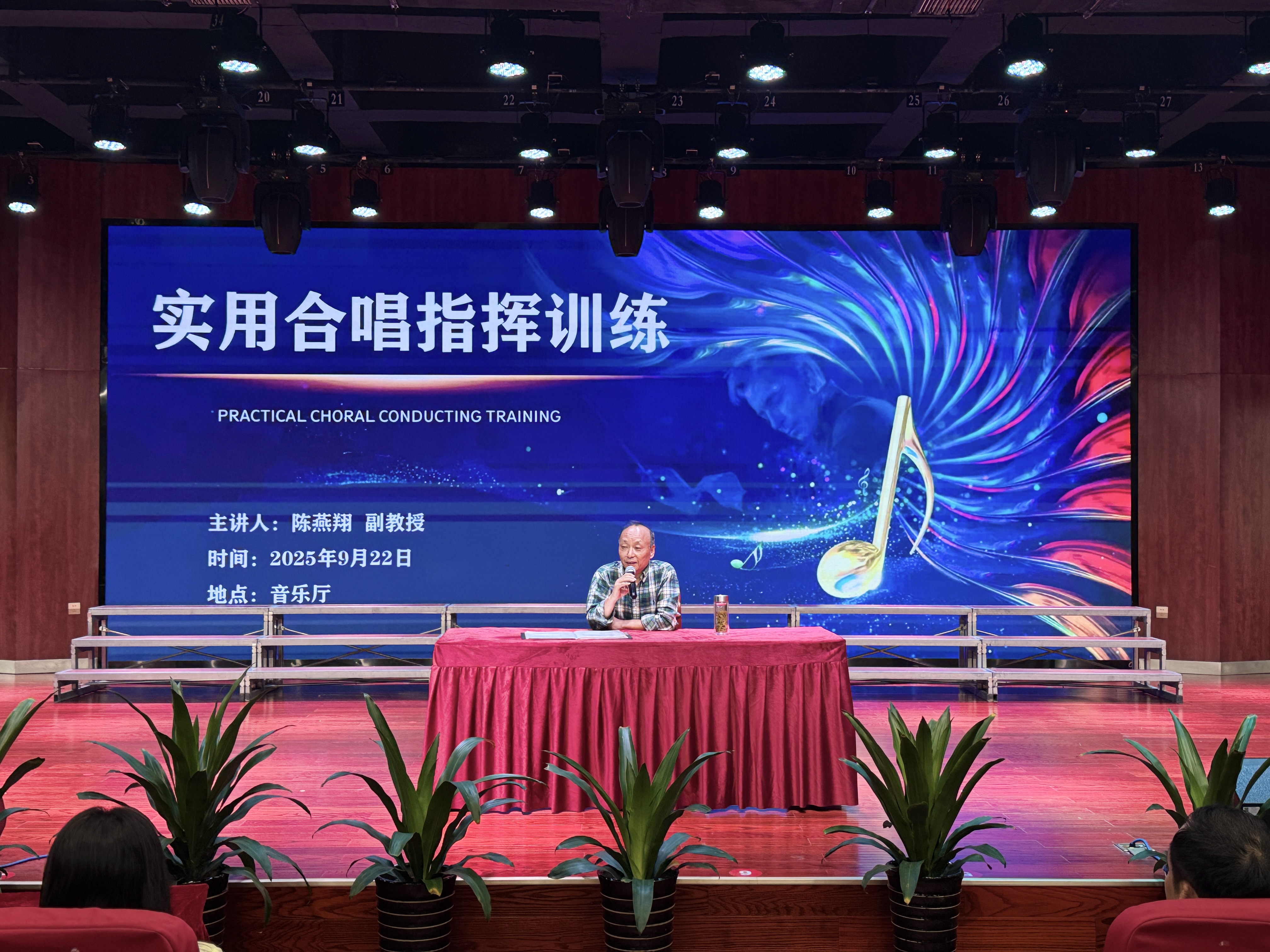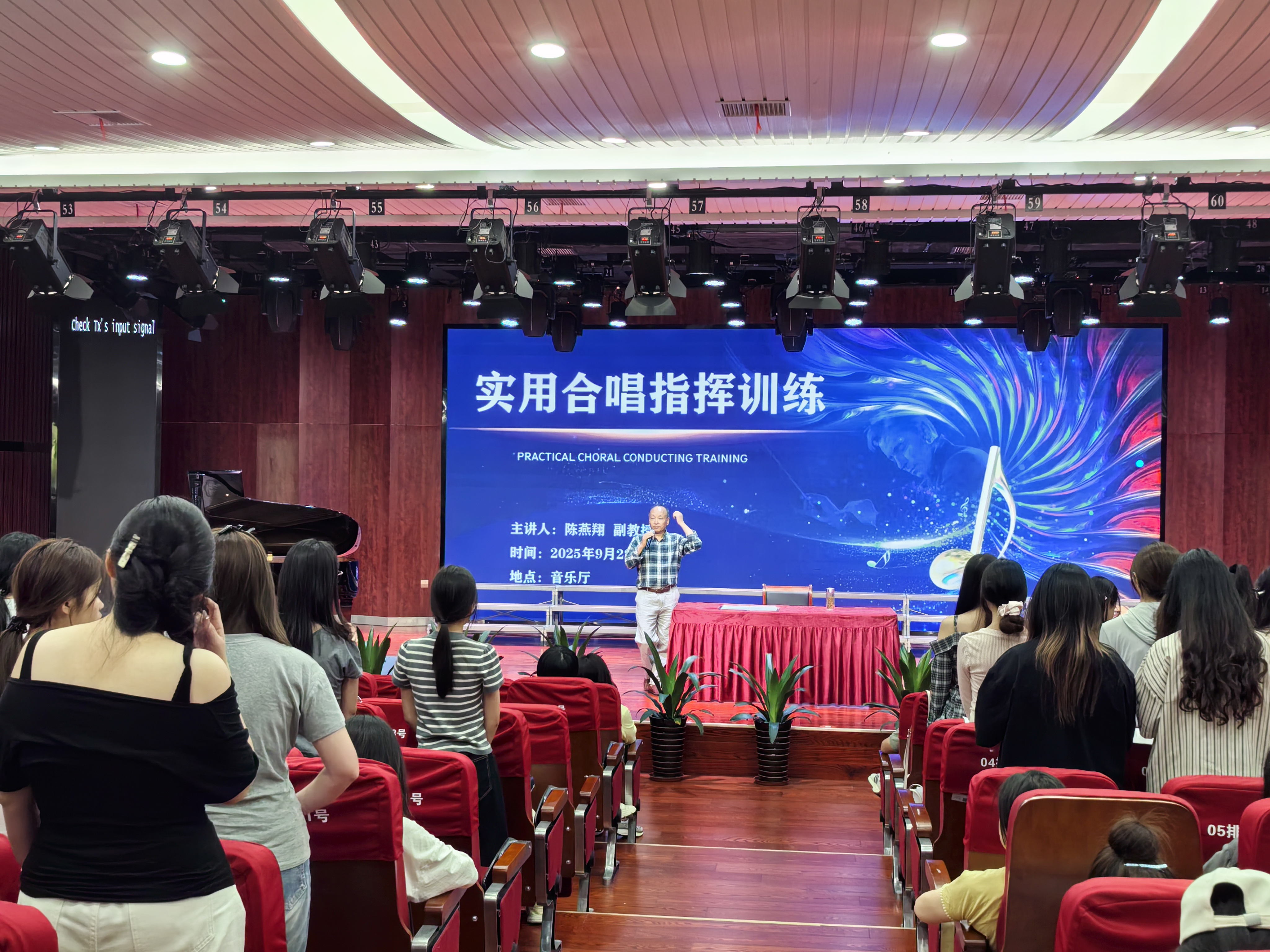 為提升我係師生的合唱與指揮專業技能,夯實合唱藝術實踐基礎,藝術與設計係於922日下午在校音樂廳成功舉辦“實用合唱與指揮訓練”講座。本次講座特邀安慶師範大學陳燕翔副教授擔任主講,係領導、專業教師、音樂專業學生以及校老年大學合唱班學員共200多人參與。