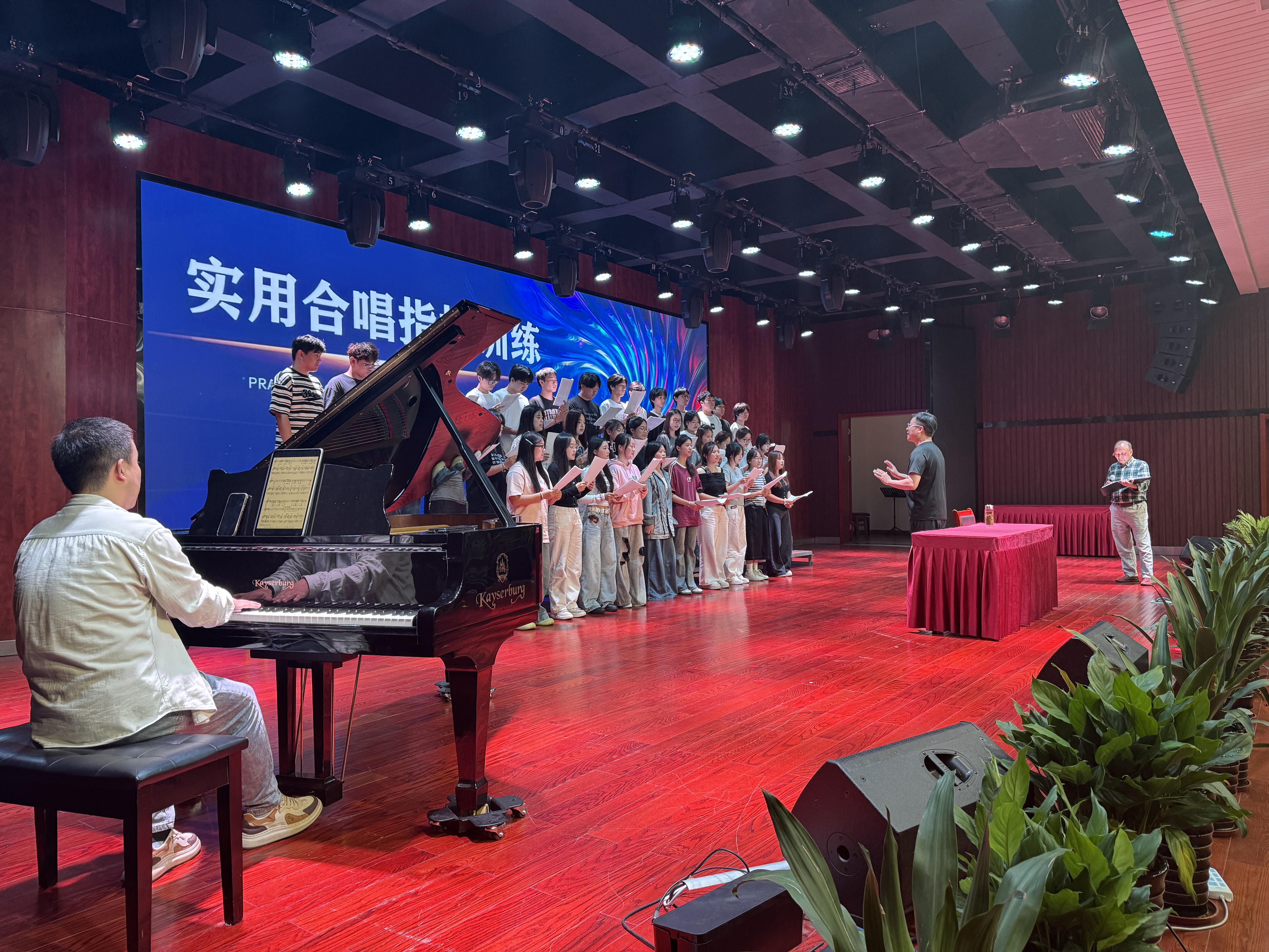 首先是合唱聲音訓練技巧從氣息控製、聲部融合、音色統一等基礎要點切入,與大家互動,指導師生們掌握提升合唱整體音質的實用方法。
