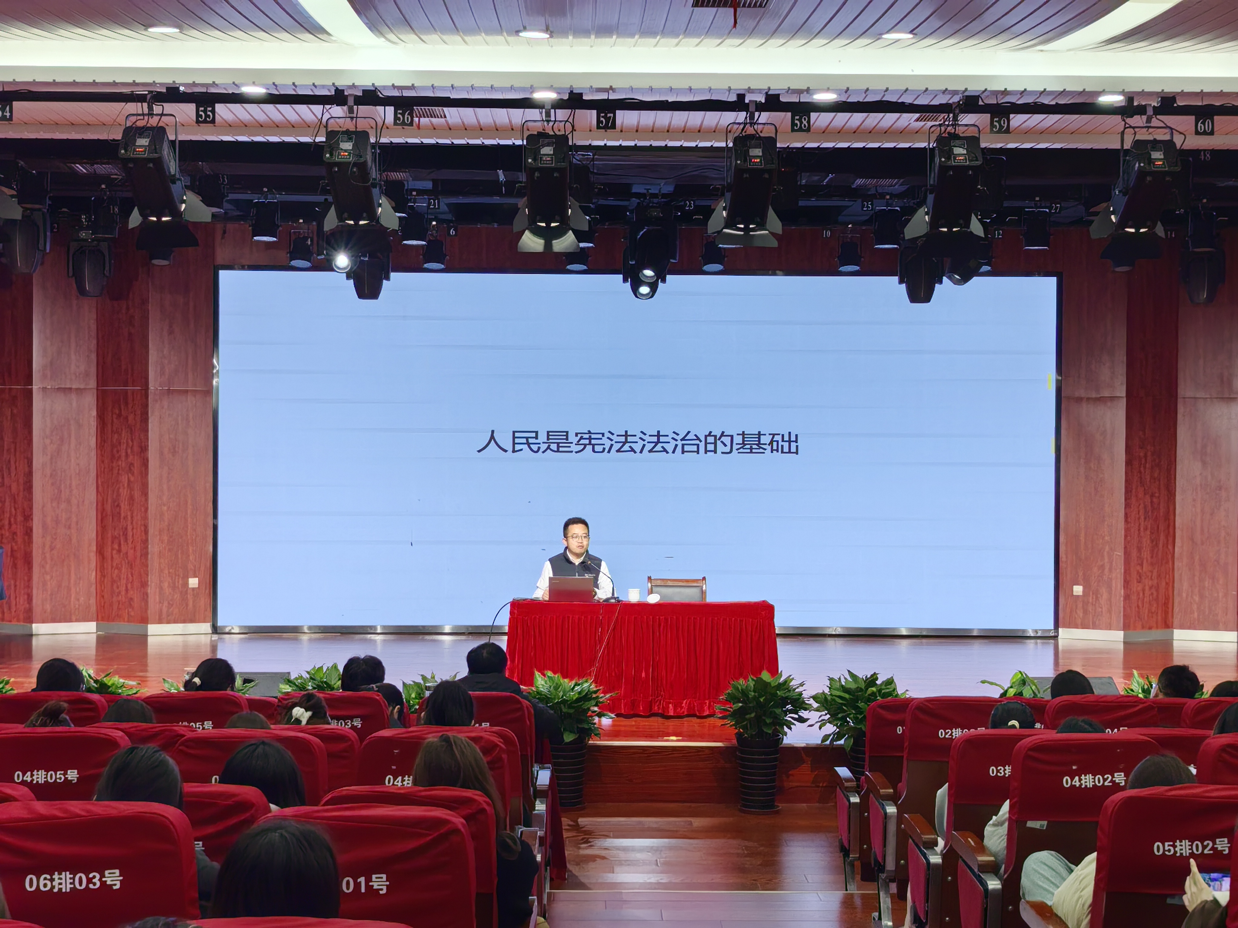 為深入學習貫徹習近平法治思想,推進築牢中華民族共同體意識教育,11月28日,學校組織開展"堅持以人民為中心,推進中華民族法治建構"專題講座。各部門的黨員幹部、思政課教師以及150名學生代表參加報告會,共同感悟法治思想的真理力量與為民溫度。