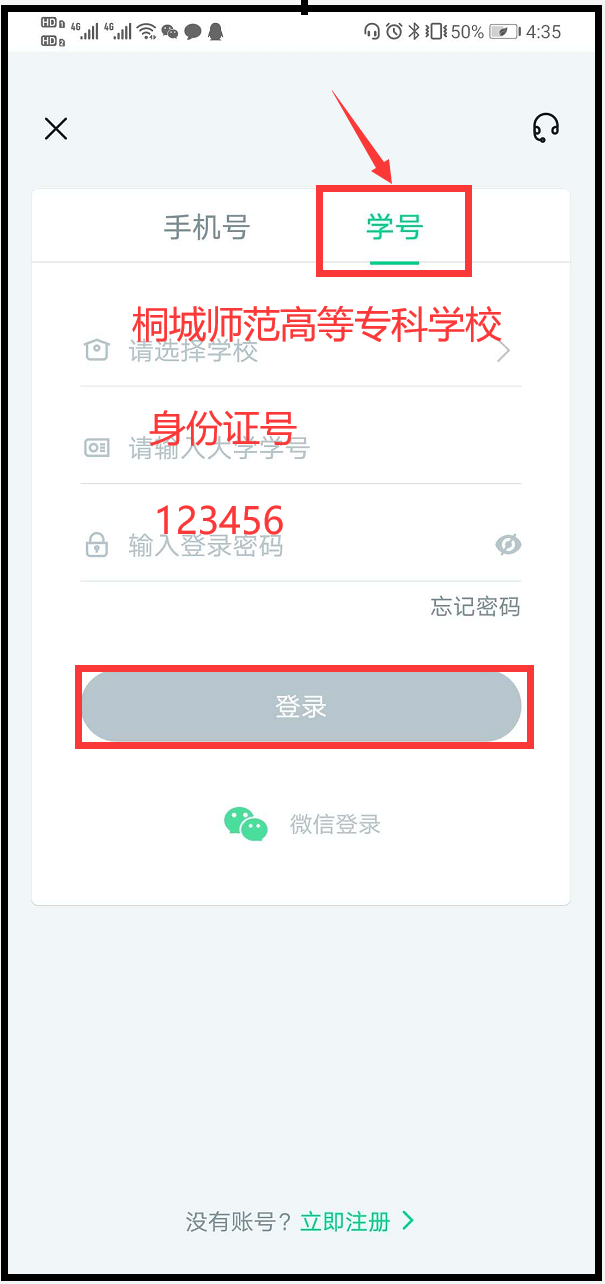 ⒈、學號登錄(強烈推薦使用學號進行登錄)