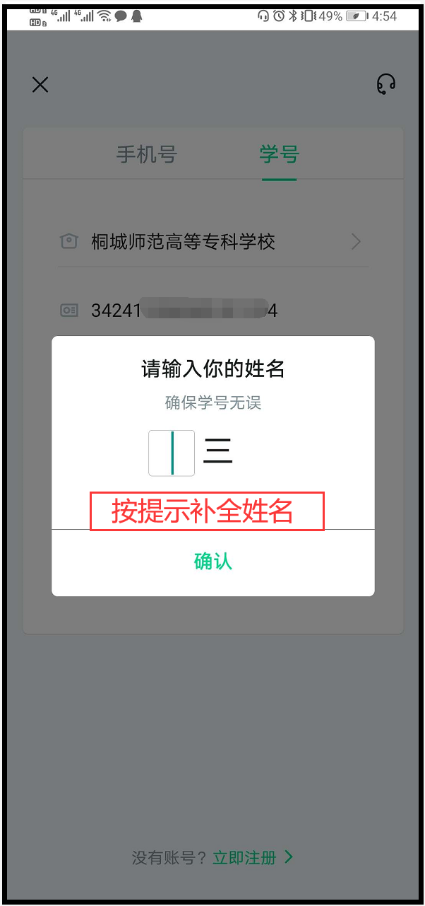 如果學生未使用學號登錄,先進行了手機號注冊,則根據係統提示完成密碼設置及注冊。