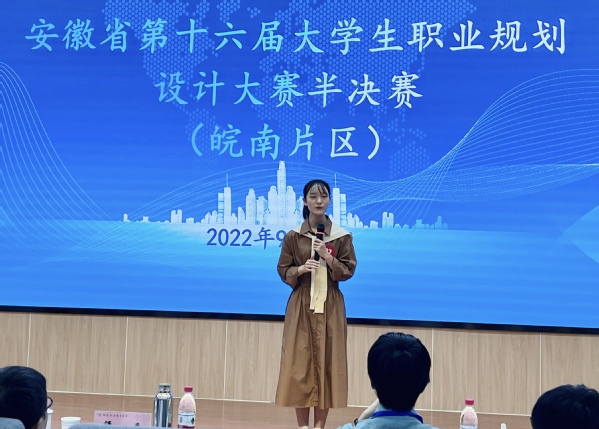 規劃精彩人生,放飛青春夢想。9月24日,第十六屆安徽省大學生職業規劃設計大賽半決賽(皖南賽區)在銅陵職業技術學院舉行。經過校內選拔、培訓,我校21級藝術設計專業王影同學代表學校參賽。