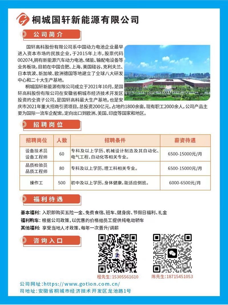 桐城國軒新能源有限公司招聘