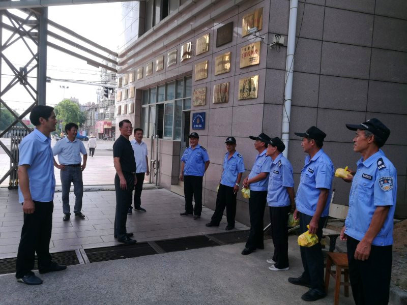 8月2日上午,校黨委書記朱宏在總務處、保衛處等部門負責人的陪同下,看望慰問暑期堅守崗位的學校安保人員及維修師傅,並送去防暑降溫慰問品。